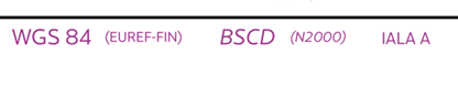 Merialueen yksilehtisillä kartoilla, yleiskartoilla ja rannikkokartoilla, vertaustaso on ilmoitettu kartan reunassa, BSCD (N2000).